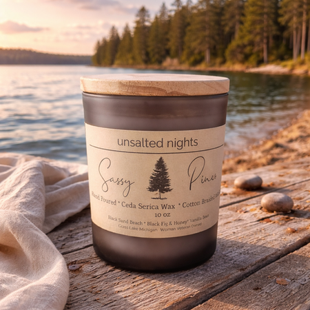 Each Sassy Pines candle and wax melt is hand-poured with love by a woman veteran right here in Grass Lake, Michigan.